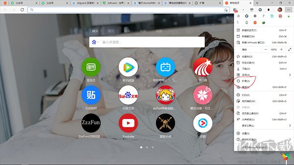 7、之后右鍵點(diǎn)擊瀏覽器右上角的插件圖標(biāo),進(jìn)入 AdGuard 設(shè)置