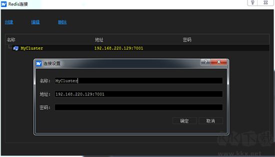 啟動(dòng)程序,點(diǎn)擊創(chuàng)建出現(xiàn)如下界面,輸入地址端口,有密碼填寫密碼,無(wú)密碼留空即可,但不支持域名方式。復(fù)制集(哨兵)或集群模式時(shí)填寫一個(gè)節(jié)點(diǎn)IP端口地址即可,軟件自動(dòng)獲取集群信息。如下連接集群,取名為MyCluster。確認(rèn)配置完成。雙擊或右鍵點(diǎn)擊連接或點(diǎn)擊連接按鈕登錄。
