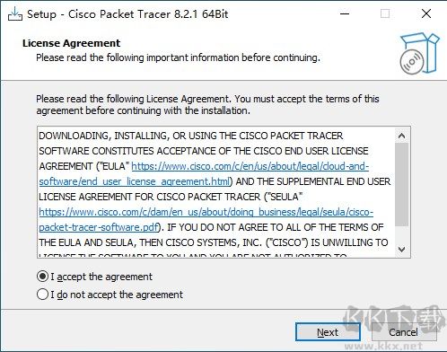 1、下載Cisco Packet Tracer最新版,閱讀并同意軟件安裝協(xié)議