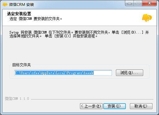 setyp將安裝微信CRM在下列文件夾。安裝到不同文件夾,單擊【瀏覽】并選擇其他的文件夾。單擊【安裝】開始安裝進(jìn)程!