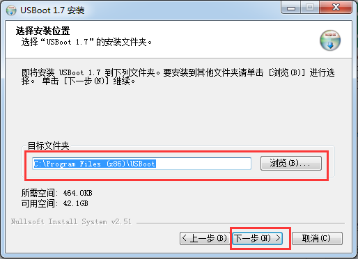 即將安裝USEoot 1.7.到下列文件夾。要安裝到其他文件夾請單擊〔瀏覽B)】進(jìn)行選擇!