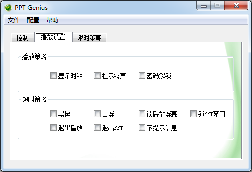 超時(shí)策略,可以選擇顯示的時(shí)鐘、提示鈴聲、密碼解鎖、黑屏、白屏、鎖播放屏幕、鎖PPT窗口、推出播放、推出PPT、不提示信息