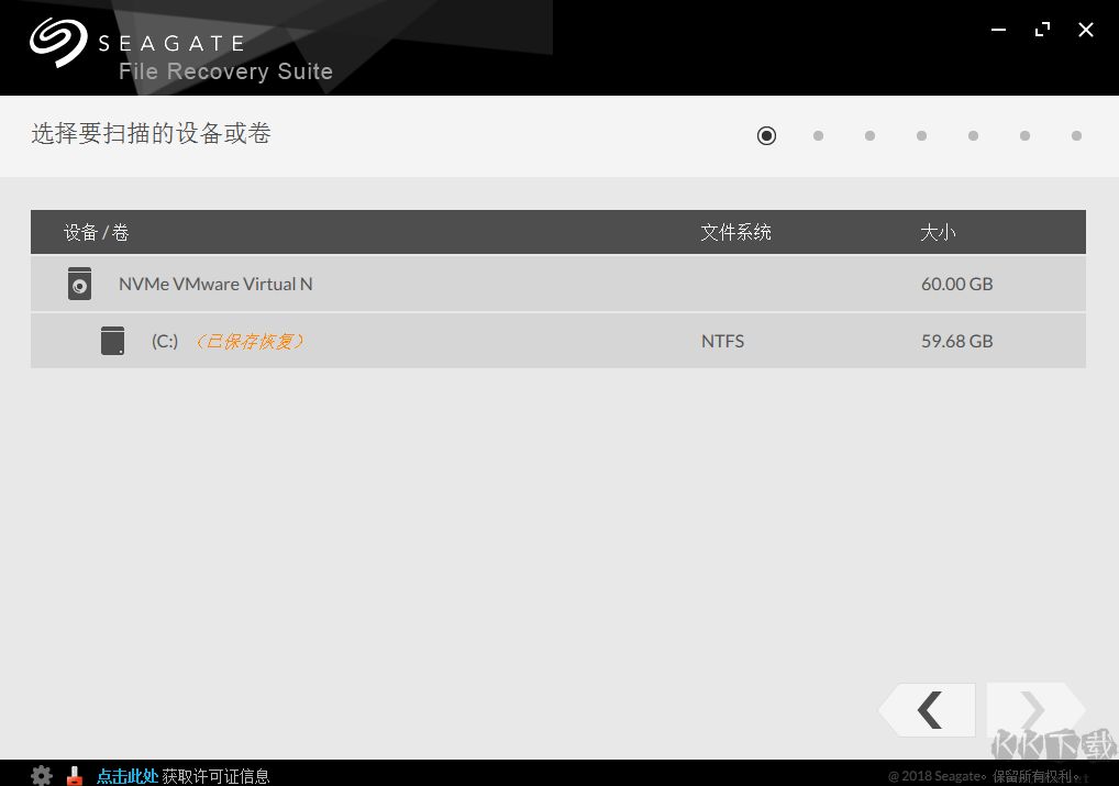 1、下載安裝好Seagate Recovery Suite,點擊恢復文件功能,選擇需要恢復掃描的設備;