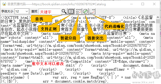 自帶源代碼查看器,提供鏈接分析、關鍵定位、標簽分段等工具;