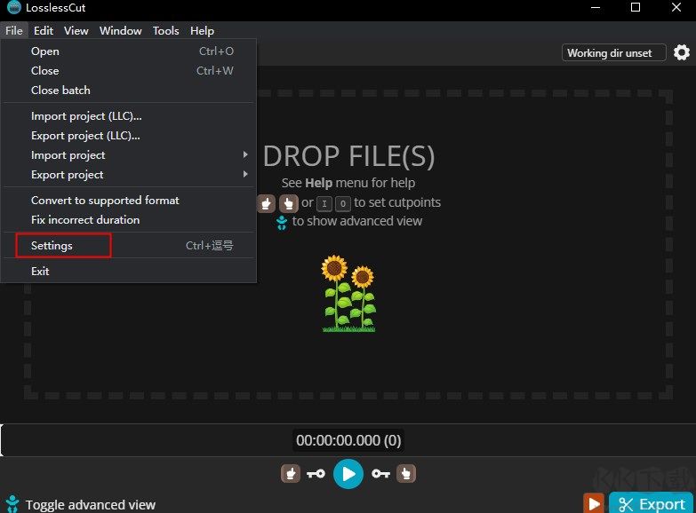 6、如需指定導出路徑,請點擊Working dir unset按鈕(默認保存在源文件所在目錄)。