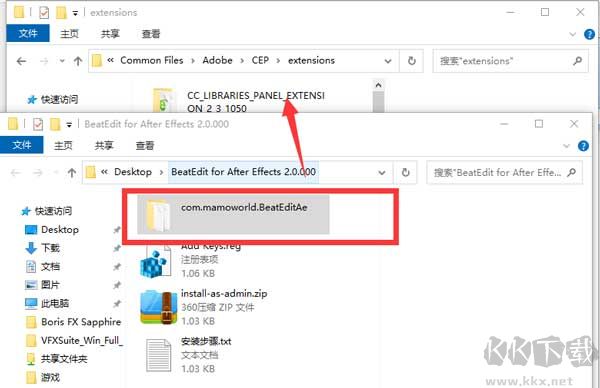 2、把com.mamoworld.BeatEditAe目錄拷貝至C:\Program Files (x86)\Common Files\Adobe\CEP\extensions\路徑下。