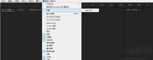 4、啟動(dòng)After Effects程序,在上方菜單欄中依次選擇窗口-擴(kuò)展-BeatEdit,便可啟動(dòng)該工具進(jìn)行工作。