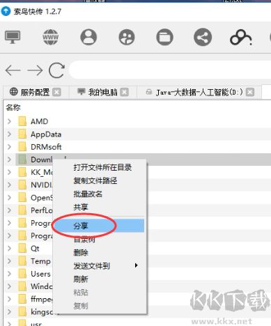 1、第一種通過軟件界面 我的電腦 文件列表里面的 分享選項分享文件。