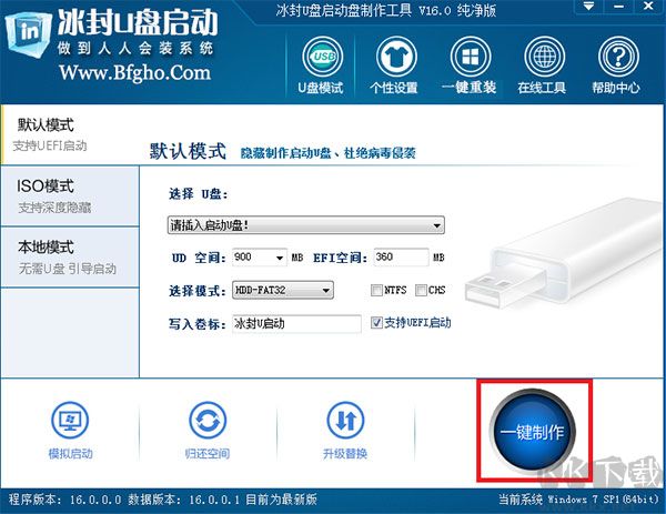 冰封U盤啟動盤制作工具是一款實用的U盤啟動盤軟件。它現(xiàn)在是最安全、最可靠的方式,多數(shù)同類軟件存在捆綁軟件等影響使用體驗的問題,但是它不欺騙、不夸大、不捆綁、不流氓、不鎖定,使用非常的清爽。它提供默認模式、ISO模式和本地模式三種制作方式,能幫助用戶輕松制作U盤啟動盤,而且兼容99%的各類電腦和系統(tǒng)。還支持個性設置,降低操作門檻,讓每個人都能輕松用U盤裝系統(tǒng)。需要的朋友快來下載試試吧!