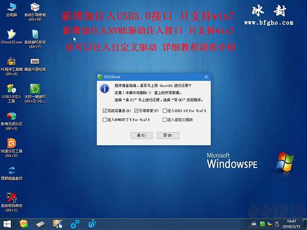 5、新增加注入USB3.0借口,只支持win7,新增加注入NVME驅(qū)動注入接口,支持win7,還可以注入自定義驅(qū)動