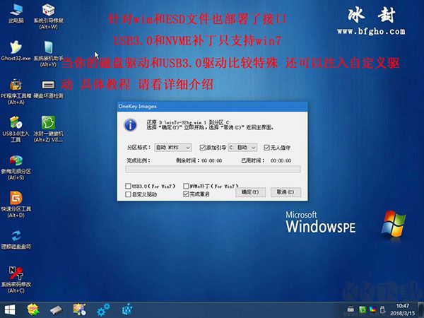 6、PE系統(tǒng)內(nèi)置ghost32一鍵還原工具,實現(xiàn)快速系統(tǒng)恢復,支持一鍵將系統(tǒng)安裝至本地硬盤。