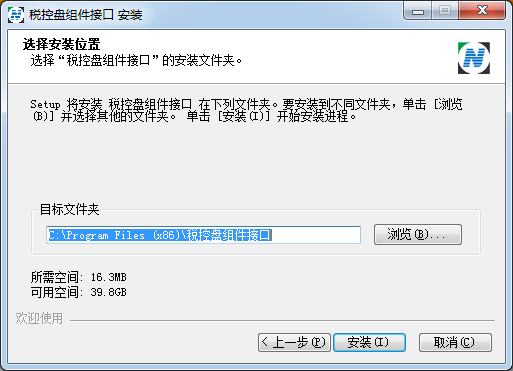 選擇“稅控盤組件接口”的安裝文件夾。