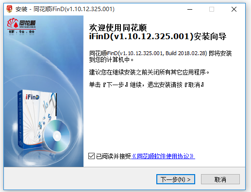 同花順iFinD(v1.10.12.325.001,Build 2018.02.28)即將安裝到您的計算機中。