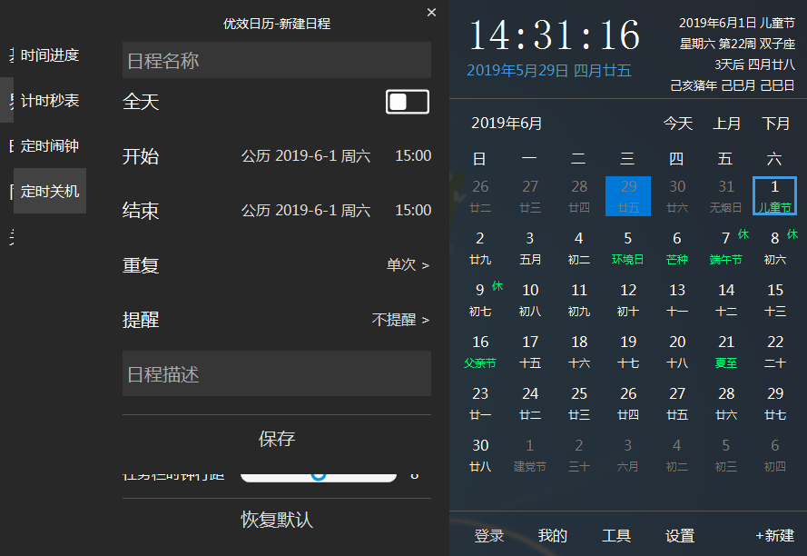 2.采用Win10原生風(fēng)格日歷主界面,使用無任何違和感