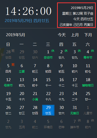 可提供節(jié)假日、農(nóng)歷的顯示。