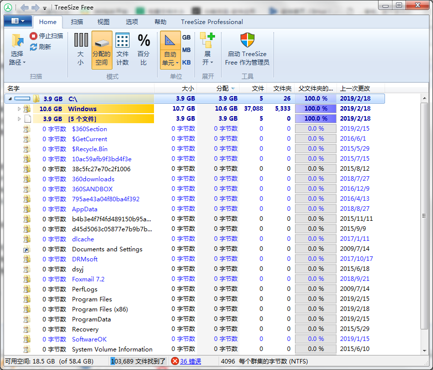 TreeSize Free電腦空間管理是一款用來幫助用戶管理磁盤空間,找出占用磁盤的文件,進(jìn)行清理,從而讓磁盤空間變得寬敞一些的磁盤管理工具,這款軟件主要支持空間大小顯示、分配空間和占用空間、最近使用數(shù)據(jù)、文件作者、NTFS壓縮率等信息,支持搜索文件。使用TreeSize Free可以將電腦硬盤上的文件進(jìn)行掃描,進(jìn)行文件分類,然后可以清除的看到文件大小的依次排列,是一款非常不錯的電腦磁盤空間管理工具!