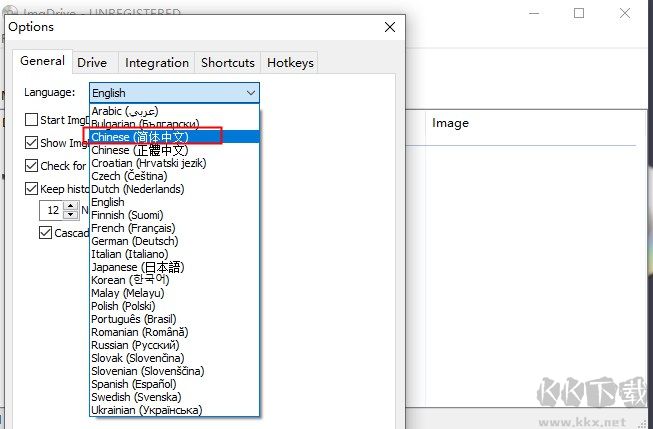 1、打開ImgDrive官方版,進入軟件主界面,選擇【Options】設(shè)置選項;