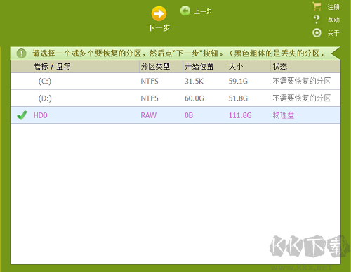 4、系統(tǒng)會自動判斷出需要恢復(fù)的盤符空間,點擊相應(yīng)的盤符即可