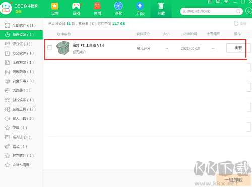 方法二:安裝并打開(kāi)360軟件管家,在卸載選項(xiàng)的列表中找到absolutepe軟件,點(diǎn)擊卸載即可。
