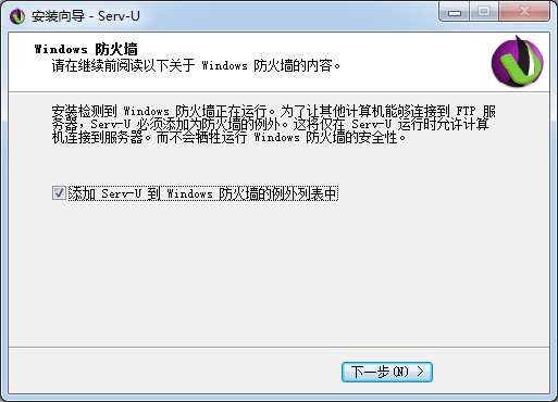 安裝向?qū)裇erv-U安裝到以下文件夾中。
