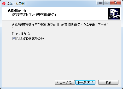 選擇您想要安裝程序在安裝友空間時執(zhí)行的附加任務(wù),然后單擊“下一步”。