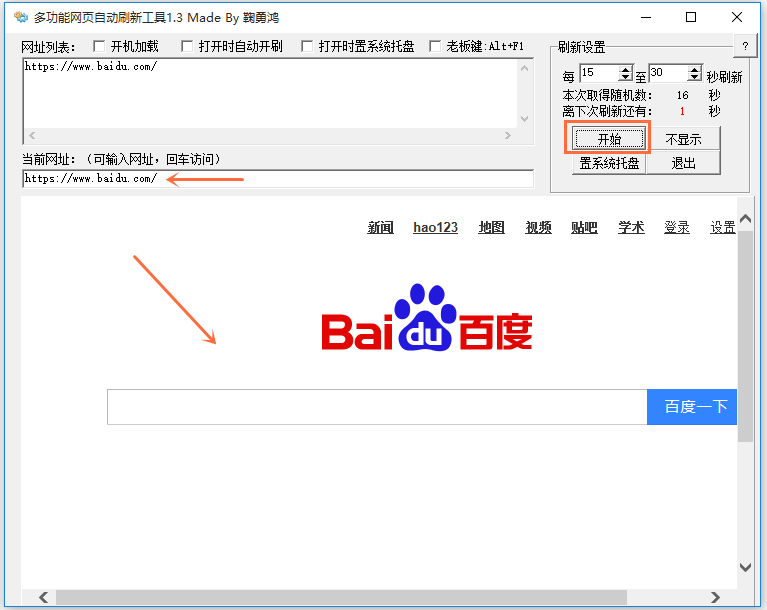 點(diǎn)擊【開始】,軟件即可自動(dòng)刷新,【當(dāng)前網(wǎng)址】一欄中會(huì)顯示你之前輸入的網(wǎng)址,如圖,