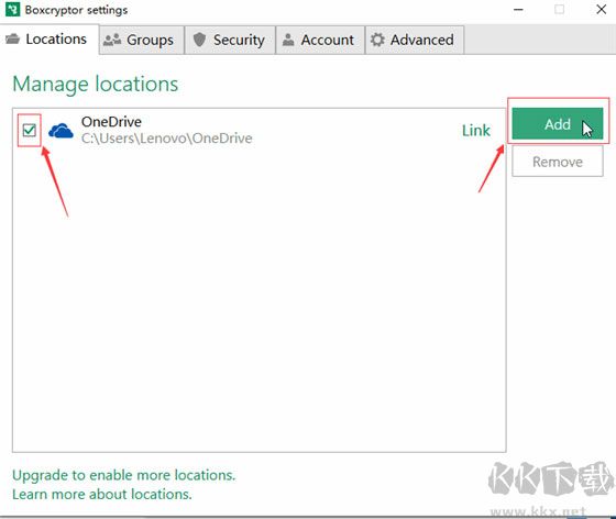 5、Boxcryptor通過自動檢測支持的服務(wù)來幫助您,這些服務(wù)將在“位置”選項卡下找到。如果未列出服務(wù),則只要它支持WebDAV,就可以手動添加它。添加或刪除云存儲服務(wù)就像單擊其名稱旁邊的復(fù)選框一樣簡單。添加后,它將作為Boxcryptor驅(qū)動器文件夾中的位置顯示。