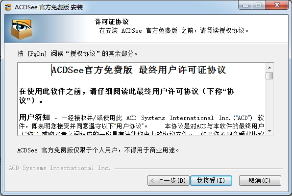 在安裝ACDSee官方免費(fèi)版之前,請(qǐng)閱讀授權(quán)協(xié)議。