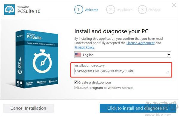 安裝向?qū)J(rèn)設(shè)置的軟件默認(rèn)安裝路徑為C:\Program Files (x86)\TweakBit\PCSuite