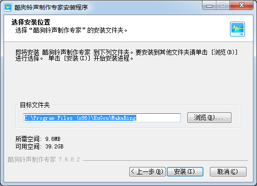 迭擇“酷狗鈴聲制作專家”的安裝文件夾。