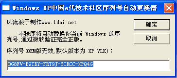 XP序列號自動替換器是一夸e代技術(shù)社區(qū)打造的Windows XP序列號自動更換工具,本稱許將自動替換你當(dāng)前 Windows的序列號并通過微軟驗證完全正版!