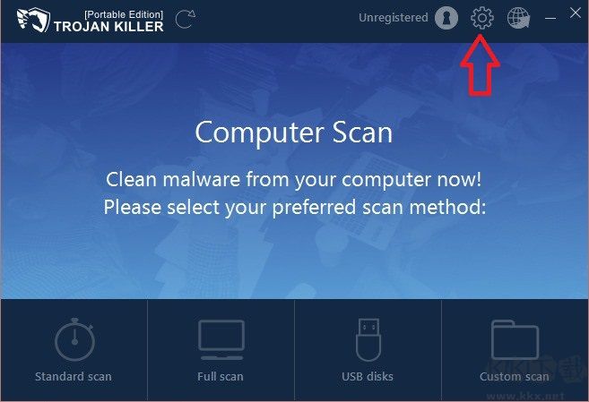通過管理 Trojan Killer 中的設(shè)置,您可以更改程序界面的語言和顏色等常規(guī)設(shè)置,并對(duì)下一次掃描的運(yùn)行方式制定附加規(guī)范。要打開設(shè)置,請(qǐng)單擊設(shè)置圖標(biāo)。