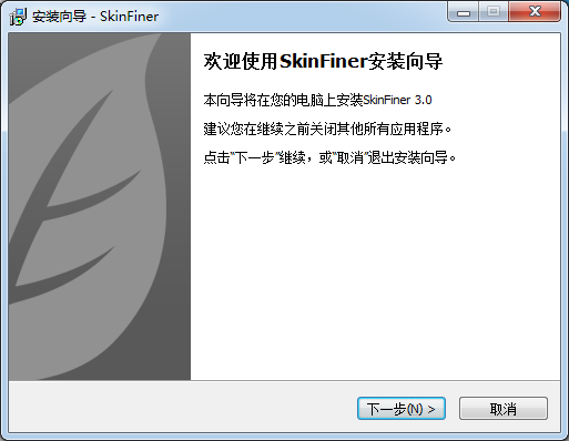 2.歡迎使用SkinFiner安裝向?qū)П鞠驅(qū)⒃谀碾娔X上安裝skinFiner 3.0建議您在維續(xù)之前關(guān)閉其他所有應(yīng)用程序。點(diǎn)擊"下一步“組續(xù),或"取消退出安裝向?qū)А?br />