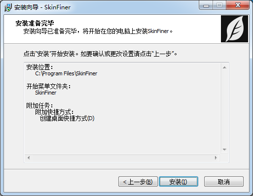 請(qǐng)選擇安裝skinFiner時(shí)需要執(zhí)行的附加任務(wù),然后點(diǎn)擊"下一步”。