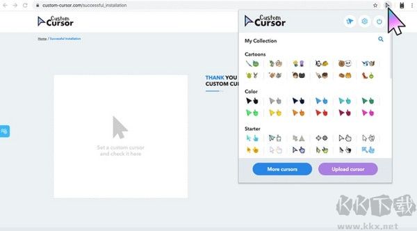 Custom Cursor是一款鼠標光標美化插件,能將系統(tǒng)默認指針,轉(zhuǎn)變?yōu)楦魇礁鳂有缕嬗腥さ男螒B(tài),內(nèi)含豐富樣式庫,海量造型任你挑選,還允許疊加動畫等特殊視覺,讓光標移動更顯生動,不僅能發(fā)現(xiàn)心儀設計,還可以親手創(chuàng)作個人專屬款式,分享給其他愛好者,為日常網(wǎng)頁瀏覽注入新鮮感,讓操作界面瞬間活潑起來,期待喜歡的朋友下載嘗試。