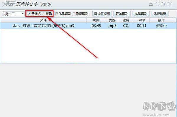 2、選定需要辨認的語言,當前可選擇普通話與英文。
