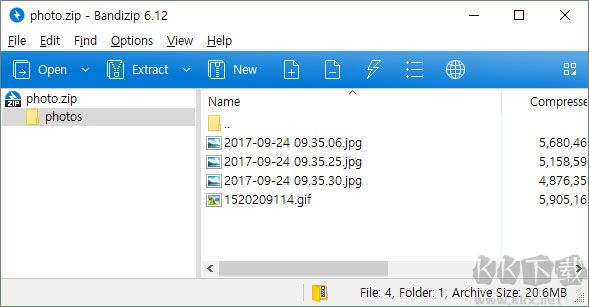 2、當(dāng)檔案中的所有文件都捆綁在一個文件夾中時,它們將被提取到當(dāng)前位置。 在類似下面案例的情況下,在當(dāng)前位置創(chuàng)建“photos”文件夾,并將所有文件提取到該文件夾內(nèi)。
