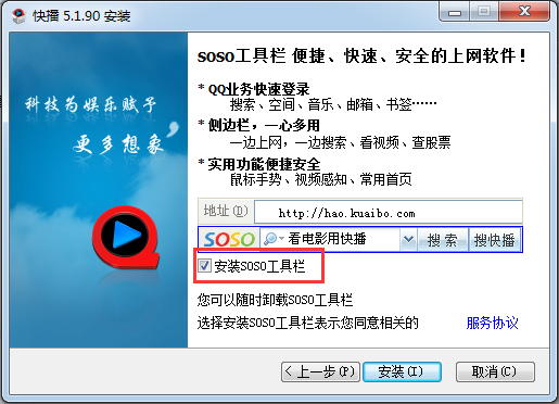 1.到本站下載安裝快播,打開安裝程序,選擇安裝組件,勾選同意接受協(xié)議