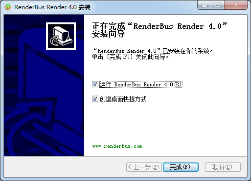 RenderBus Render_4.0”已安裝在你的系統(tǒng)。單擊――完成F]關(guān)閉此向?qū)А?br />