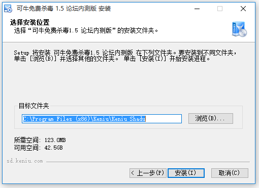 選擇“可牛免費(fèi)殺毒1.5 論壇內(nèi)測(cè)版”的安裝文件夾。