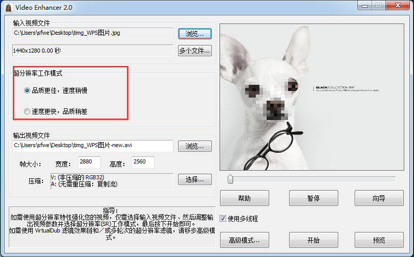 3.選擇幀大小,選擇壓縮類(lèi)型,最后點(diǎn)擊開(kāi)始按鈕即開(kāi)始去除馬賽克!