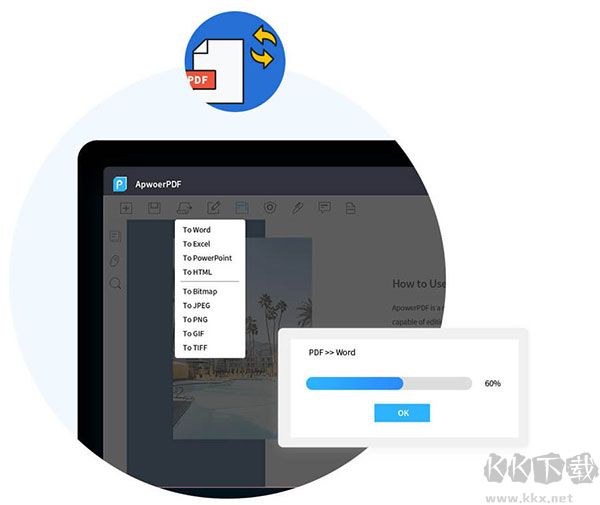 此PDF編輯工具內(nèi)置轉(zhuǎn)換功能,它能夠幫您將PDF轉(zhuǎn)換為Word、Excel、HTML、Text、PPT等,也可以將Office格式秒變PDF格式。轉(zhuǎn)換完成的文件能夠保留原始數(shù)據(jù)、樣式及布局。