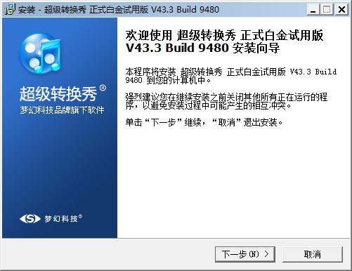 1.歡迎使用超級轉(zhuǎn)換秀正式白金試用版V43.3 Build 9480安裝向?qū)?br />