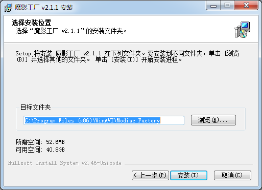 選擇“魔影工廠(chǎng) v2.1.1”的安裝文件夾。