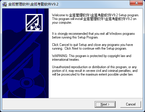 1、welcome to金狐管理軟件!金狐考勤軟性v9.2 Setup program.This program will instal金狐管理軟件拴狐考勤軟件v9.2 onyour computer.