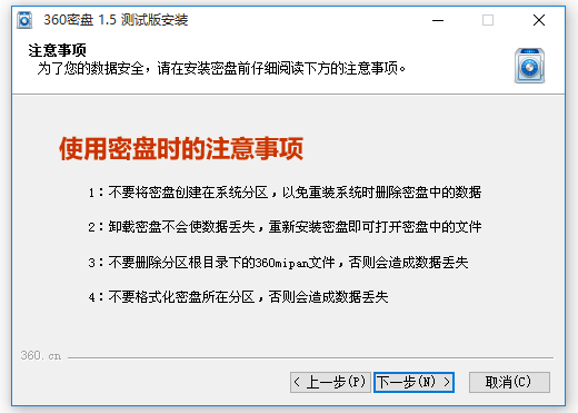 這個(gè)向?qū)⒅敢阃瓿?ldquo;360密盤”的安裝進(jìn)程。