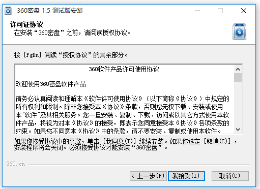360密盤1.5測試版安裝許可證協(xié)議