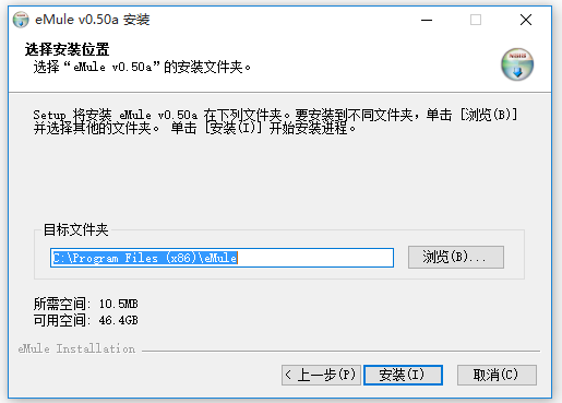 setup_將安裝eMule v0.50a在下列文件夾。要安裝到不同文件夾,單擊[瀏覽(B)],點擊【安裝】按鈕即可完成!