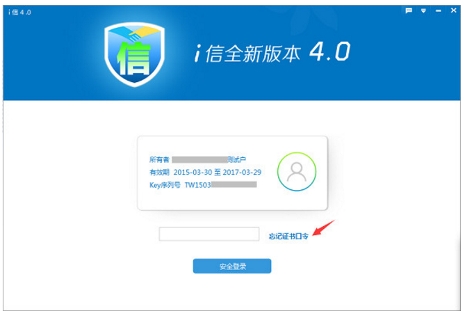 下載安裝好i信客戶端,插入待解鎖的CA證書,點擊【忘記證書口令】,