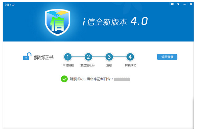 稍等片刻證書解鎖成功,請牢記您的新口令。